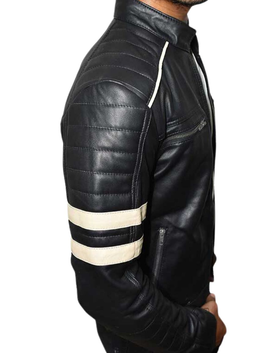 in black that lends mystery to your look. You can pick between good leather and cotton. They both are very good to have. They make you look you put a lot of effort into your look. The shirt collar, full-zip front closure, and the